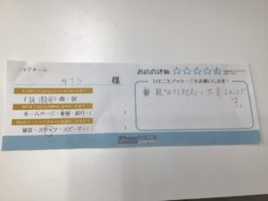 スマホ修理工房海老名ビナウォーク店です。今回はiPhoneSEでご来店頂いたお客様からの口コミの紹介です。