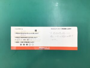 【iPhoneSEのドックコネクター修理でご来店のまるわ様から頂いた評価】