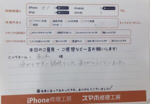 スマホ修理工房海老名ビナウォーク店・iPhone8pのバッテリー交換でお越しのお客様から頂いた口コミ