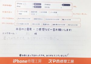 【iPhone6sのバッテリー修理でご来店のまる様から頂いたコメント】
