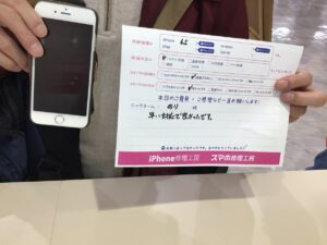 スマホ修理工房海老名ビナウォーク店/iPhone6s のバッテリー交換でご来店のお客様から頂いたお言葉
