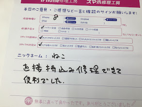 【iPhone8でご来店のねこ様から頂いた口コミ】