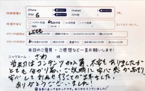スマホ修理工房海老名ビナウォーク店/iPad6の画面交換でご来店のお客様から頂いたお言葉