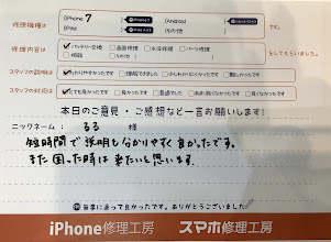 iPhone7でご来店のるる様から頂いた口コミをご紹介します。