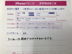 【iPhoneSE2でご来店のリコ様から頂いた評価】