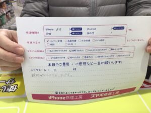 【iPhone8でご来店の匿名希望様から頂いた評価】