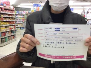 スマホ修理工房海老名ビナウォーク店/iPhone6s、バッテリー交換の修理でご来店のお客様から頂いたお言葉