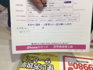 スマホ修理工房海老名ビナウォーク店/iPhone6s のバッテリー交換でご来店のお客様から頂いたお言葉