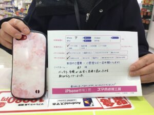 スマホ修理工房海老名ビナウォーク店/iPhone7 のバッテリー交換でご来店のお客様から頂いたお言葉