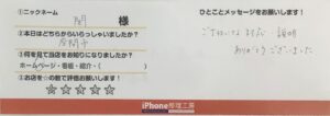 【iPhone8水没修理でご来店の関様から頂いた評価】