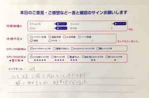 【iPhone12の画面交換でご来店のななし様からいただいたコメント】