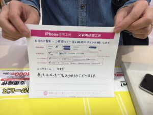 スマホ修理工房海老名ビナウォーク店/iPhoneXの画面修理でご来店のお客様から頂いたお言葉