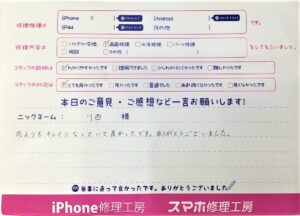 【iPhone8の画面修理でご来店の川西様から頂いた口コミ】