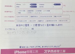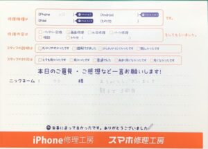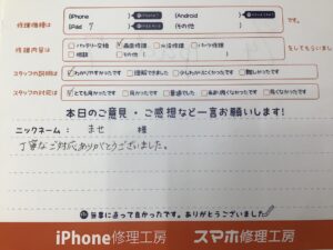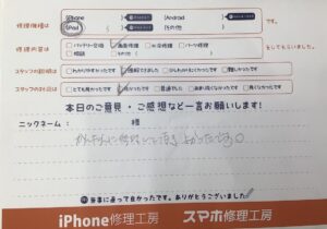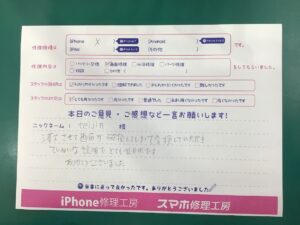 iPhone7の画面修理でご来店のカミ様から頂いた口コミをご紹介します。